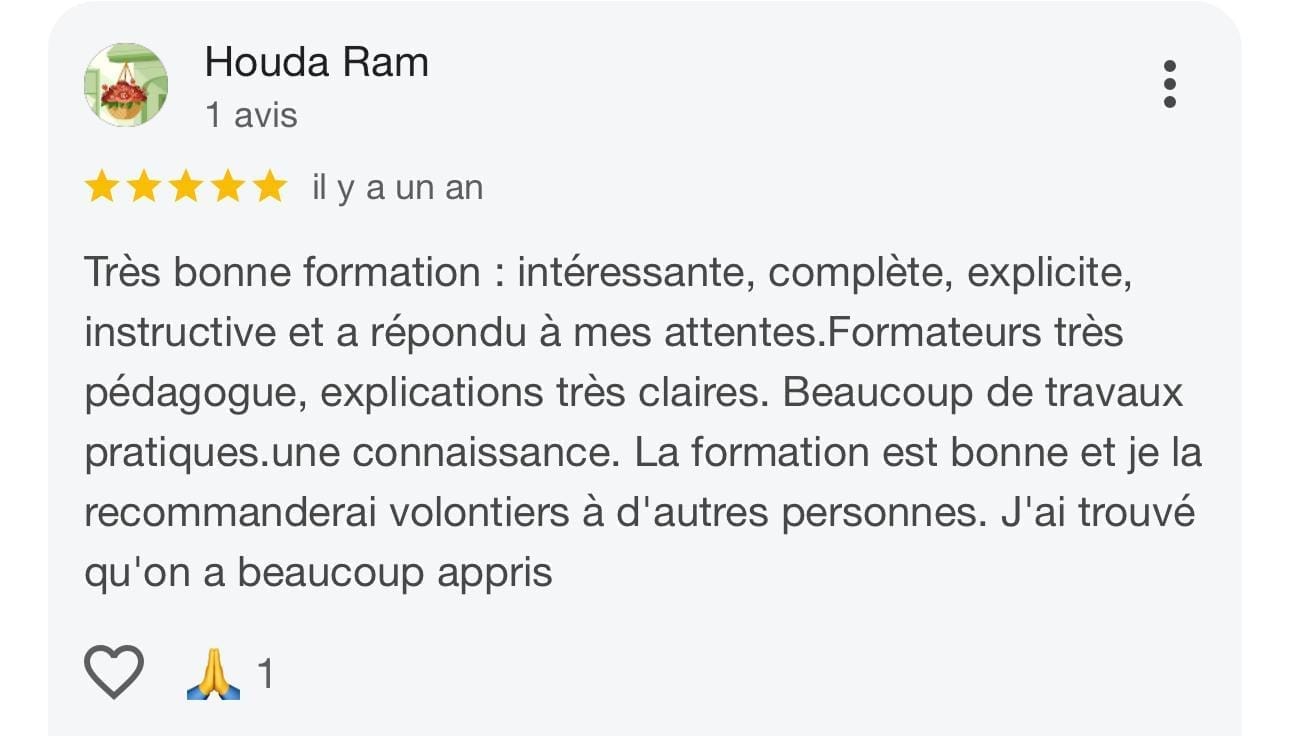 Oui. Vous êtes pris en charge par un coach référent tout au long de la formation. Il valide vos exercices, répond à vos questions et vous aide à appliquer les concepts en situation réelle. Vous êtes accompagné, pas simplement formé.